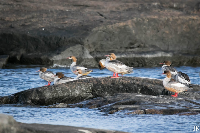 Urpiaiskoiras, koska punainen otsa. Näitä oli muutama kymmen. Yksi reppana oli saapuessaan jo niin väsynyt, että laskeutui vesilammikkoon. Aikansa levättyään se pääsi kuitenkin kalliolle kuivahtamaan ja lepäämään.